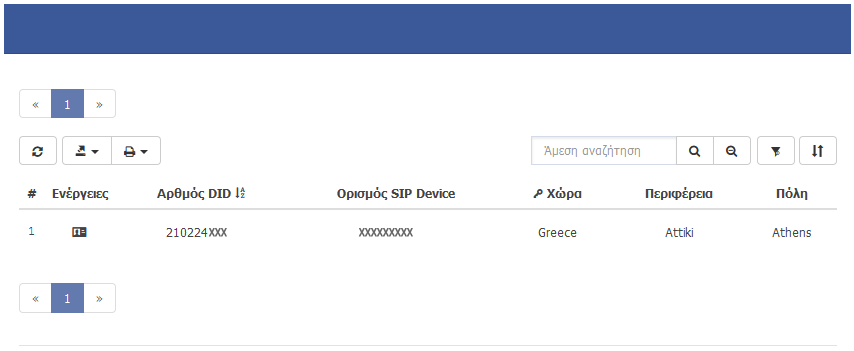 Εδώ θα βρείτε τους Αριθμούς σας, επίσης βλέπετε σε ποιο SIP Device δρομολογούνται, όπως και την τοπολογία των αριθμών σας.